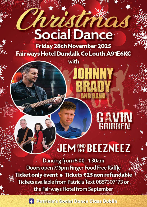 We also hold social dances once a month with country bands and one man bands. We’ve had Johnny Brady, Gerry Guthrie, Dominic and Barry Kirwan up as well as lots of one man bands.
