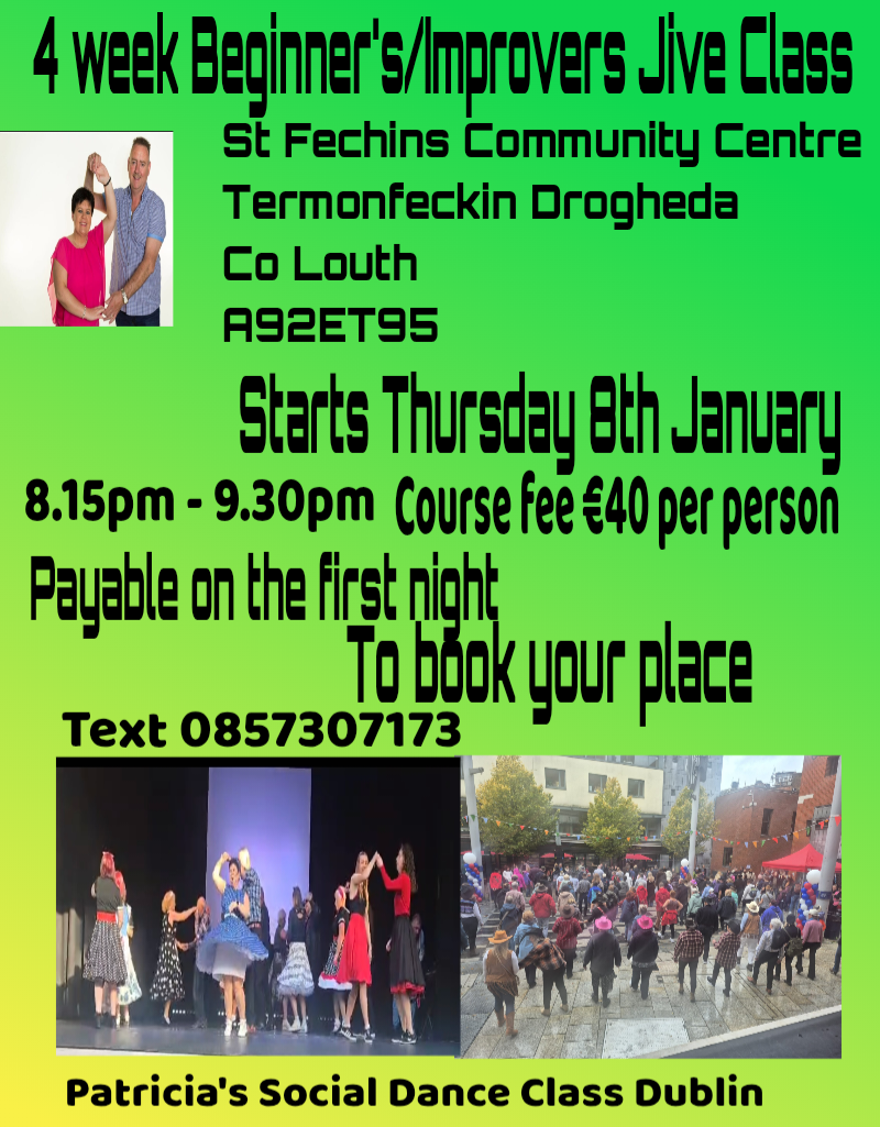 I learnt to dance down the country in The Well, Moate with my husband Pat about 5 years ago. We had to travel down the country as there was no one teaching this style of country jive and Social dancing in Dublin.